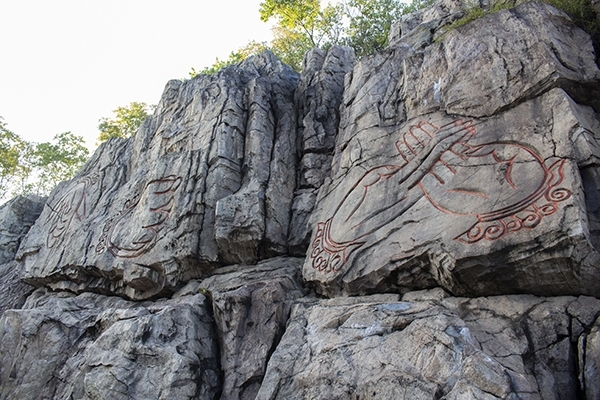 艮石陣石壁內的印上了道家手訣,一共9個,這手訣用來祈福,驅魔,在陽光下,更是感覺到一股神秘的色彩。